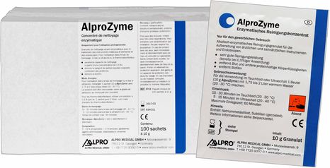 Alkalisch-enzymatisches Reinigungs-und Vordesinfektionsgranulat für die Aufbereitung von ärztlichen und zahnärztlichen Instrumenten, rotierenden Präzisionsinstrumenten und Endoskopen. Verwendbar im Tauchbad, Ultraschallgerät und Reinigungs- und Desinfektionsgerät.